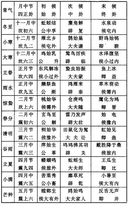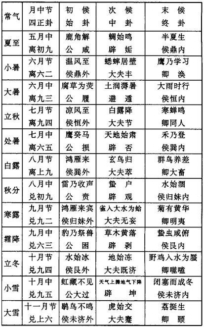 卦,指《周易》的卦。气,气候节气。即以《周易》之卦与二十四节气、七十二候相配应,而解释易卦之意。最早出于孟喜的卦气说。他用坎、离、震、兑四卦代表一年四季,其二十四爻代表二十四节气。认为易本以气为依据,而后人借以人事喻晓易理,用阴阳解说《周易》,推断气候变化与人事吉凶。其后京房,一行及明惠栋对其说也有阐发。唐僧一行制一卦气图(又称卦气七十二候图。见卦气七十二候图),该图以坎、震、离、兑为四正卦,各主管二十四节气中的六个节气,每爻又主管一个节气。六十四卦中其它六十卦,按辟(君)、公、侯、卿、大夫五爵位分为五组,每组各有十二卦,配以七十二候。其中侯卦分内外,每一节气分为初候、次候、未候;配六十卦时,初候为始卦,次候为中卦,末候为终卦。每月的月首称为节,月中称为中。二十四节气,分为中气十二,节气十二。卦气之说,成为后人占卜、命理的主要依据之一。 卦气图