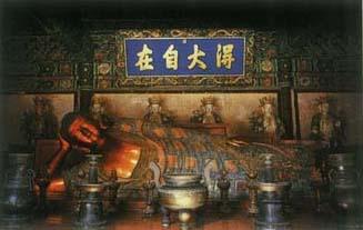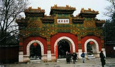 释义 | 卧佛寺 位于西山余脉寿安山的南麓,距城区20公里,是西山名刹。始建于唐贞观年间,称兜率寺,规模较小。当时塑有檀香木卧佛一尊,现已不存。元代英宗至治元年(1321年)在原址上扩建,并铸造了一尊巨大的释迦牟尼卧式铜像,改称寿安寺,明代又历经五次重修,崇祯年间改名为永安寺。明末清初,卧佛寺受冷遇,直到雍正年间怡亲王允祥施资修葺后才重新兴盛,重修后改称十方普觉寺,此后乾隆年间又进行过大规模扩建,形成现在的格局。因寺内有一尊卧佛铜像,故俗称卧佛寺。 沿坡道上行直达山门,山门殿前立一座琉璃彩牌坊,正、背面有乾隆题额“同参密藏”和“具足精严”八个字。入山门依次是天王殿、三世佛殿、卧佛殿和藏经楼,其中以卧佛殿最为著名。 卧佛殿中供一尊铜铸卧佛,长53米,高1.6米,重约54吨,此佛铸造于元至治年间,历经10年才铸成,是一尊实心铜佛。卧佛头西脚东面南,左手平直,右手弯曲支撑头部,神态安祥。卧佛身后环立著12圆觉菩萨。整组塑像刻画了释迦牟尼涅槃于娑罗树下,向其12个弟子嘱托后事的佛教故事。 卧佛寺里的娑罗树也是寺中一景。娑罗开花时,朵朵都像座洁白的小玉塔,倒悬于枝叶之间,美丽而神圣,被善男信女们视为“宝树”。 在卧佛寺西北不远处有一条过去以盛产樱桃而得名的樱桃沟,“樱桃花万树,春来想灼灼”,是一处不染尘埃的世外净地。沟的西边有一处巨大的岩洞,能容20人,那便是有名的白鹿岩。 这个卧式像是释迦牟尼在印度拘尸那伽城外临终前的纪念像,身后12尊圆觉是他的12个大弟子。这种姿态表示他在生病的时候,自知不起,就在娑罗树下,向弟子们嘱咐后事:“佛法慈悲为本,我一生以和平仁慈对待众生,你们要本此教义,努力布道。”第二天就圆寂了。 卧佛寺的古银杏 卧佛寺内有两株银杏树,树龄均千年有余,树围需数人合抱,荫庇上百平方米。秋日一至,黄叶飘洒,景致闻名,故卧佛寺亦有“黄叶寺”之称。郑板桥有诗曰:“匹马径寻黄叶寺,雨晴稻熟早秋天。” 相传远在11世纪的辽代,有个骑著白鹿的仙人来到这里游玩,看见风景很美,舍不得离开,就在这里岩洞住下了,从此人们就把它叫做“白鹿岩”。 |