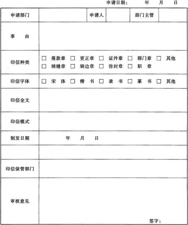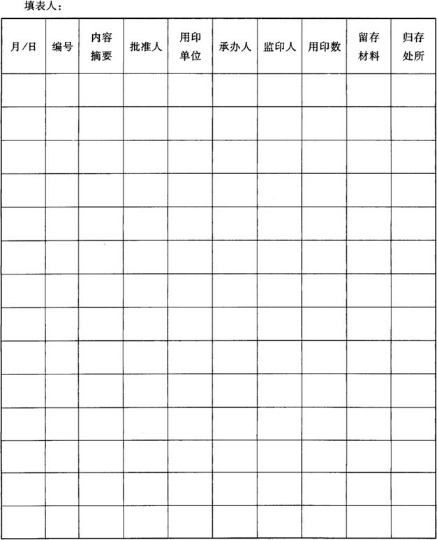 注:除了单位介绍信有存根,发文有发文登记簿而不用登记外,其他每次用印,不论大事或小事都应进行登记。