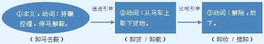 释义 | ![]() ❶ 把东西从装载的地方移出来或搬下来: ~货|~甲归田|把箱子~下来。 装 zhuāng ~箱|把货物~上车|东西要及时~运。 ❷ 拆除;从整体拆下某一部件或某一部分: ~零件|~下一个轮子来检查。 安 ān ~装|~上螺丝,机器运行正常了。 装 zhuāng ~配|马达~在变速箱下面。 ❶把运输的东西从运输工具上搬下来。能重叠。作带宾、带补谓语。 工人们正在~水泥|这个领导常和工人一起~货物|请帮忙~~货|才十多分钟,煤就被我们~完了|乡亲们把运来的一卡车百货~了下来|大家一会儿就~完了货。 ❷把牲口身上拴的套解开取下来;把零件从机械上拆下来。能重叠。作带宾、带补谓语。 ~牲口|~螺丝钉|零件~完了|把洗衣机的转盘~下来|车铃不知被谁~走了|这台机器我怎么也~不开,还是你来~~吧。 【近】 ❶搬 ❷拆 下 【词语】 卸车 卸货 卸任 卸责 卸装 卸妆 字源解说 卸,篆文 ![]() ![]() ![]() ![]() ![]() ![]() ![]() ![]() ![]() 附 文言版《説文解字》:卸,舍車解馬也。从卪止午。 附 白话版《说文解字》:卸,解开拉车的马背套具,脱开车辆。字形采用“卪、止、午”作会义。 引申线索 ![]() 【字族索引】 𦈢 卩 【同音字】 xiè |