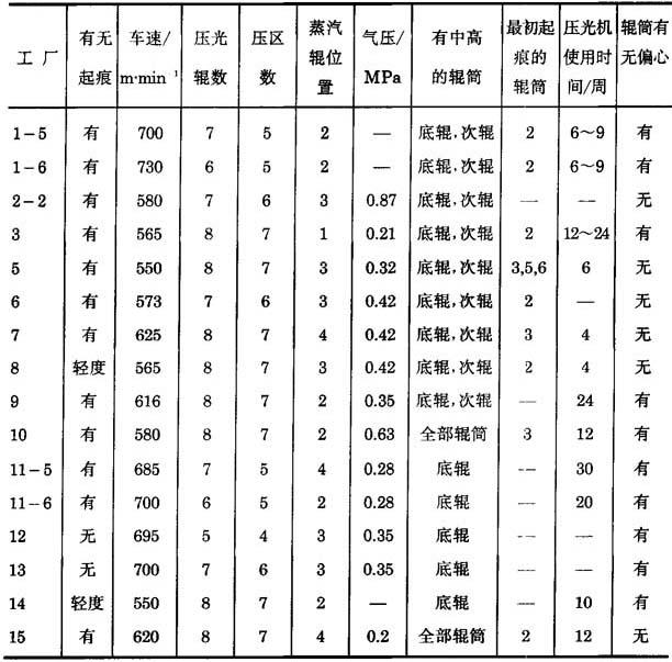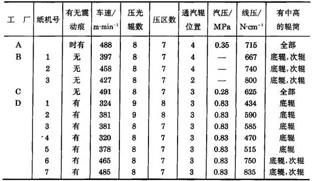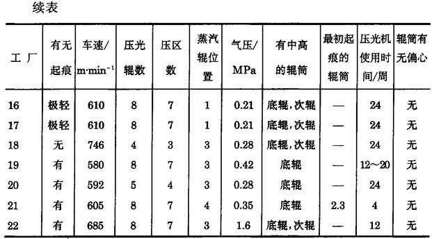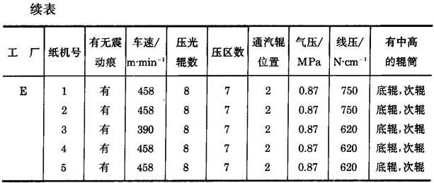 表11-6-26 车速500~700m/min造纸机压光辊震动痕的实况