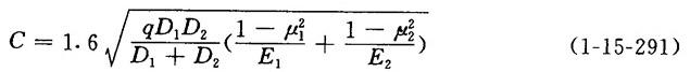 释义 | 压区宽度的计算 【说明】 压区宽度取决于外加压力、辊面材质的机械特性(硬度、纵向弹性模数、泊松系数等)、辊径和辊间物质的压缩变形特性(主要指毛毯),它又决定了在外加压力下的压区平均压力P,而P正是决定湿压榨脱水效率的主要因素。压区宽度有下列几种计算方法。 1.一般计算法 【公式】 式中 C——压区宽度(m) q——辊间线压(N/m) D1、D2——相应地为两个压辊直径(m) E1、E2——辊体或辊面层(包胶层)的纵向弹性模数(Pa) μ1、μ2——辊体或辊面层的泊松系数,对于胶层可取μ 2.当一个辊筒有包胶层时压区宽度计算 【公式】 式中符号含义及单位同前 3.李达尔(L·Rydar)的用计算机计算压区宽度公式 【公式】 式中 C——压区宽度(in) q——辊所受的负荷(Ib/in),即外加线压力 δ——胶层工作厚度(in) D1——包胶压辊的直径(in) D2——与包胶辊相接的硬辊直径(in) H——胶层硬度,以1/8in直径的球测出的普氏硬度(P&J) 【附表】 压榨辊的特征及压区宽度等参数见表1-15-26 表1-15-26 压榨辊的特征和压区宽度(线压300Ib/in) 注: |