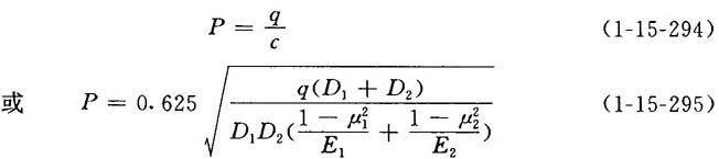 释义 | 压区平均压力的计算 【说明】 压区平均压力是决定湿压榨脱水效率的主要因素。 【公式】 式中 P——压区的平均压力(Pa) q——辊间线压力(N/m) c——压区宽度(m) 其它同式1-15-291 【注意】 式1-15-296适用于一个辊筒有包胶层时的压力计算。 |
