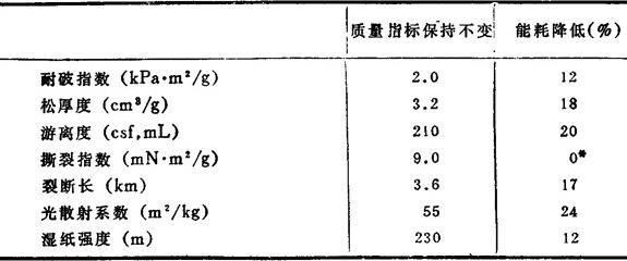 释义 | 压差对TMP能耗和性质的影响 压差定义为盘磨机入口与出口之压力差,为了和习惯一致,将盘磨机外壳内的压力大于出口压力的称为+△P。以往对△P重视不够,并未当作重要参数。最近,随著热回收技术的发展,盘磨机外壳内的压力一般保持比入口处为大的压力。这种较大的正压差,主要是为了提高热回收效率,而不是为了影响纸浆的性质。 Lunan等人研究了这压差对TMP的能耗及成浆性质的影响,如图7-3-57表示在7个不同的压差下,耐破指数与能耗的关系。从中求出三个△P的回归直线,这三条线相平行,说明△P对耐破指数与能耗关系有显著影响。从回归线中计算出在此能耗为8.2MJ/kg时,当△P从+75kPa降为-75kPa时,耐破指数从2.0提高到2.4kPa·m2/g·这结果和表7-3-13所列其它指标相似。除了撕裂度降低外所有物理指标都有明显提高。从这回归线可计算出改变△P时要保持耐破指数为2.0kPa·m2/g所需的能量。如图7-3-58,上面一线表明当△P从+75kPa降至-75kPa时,能耗降低1MJ/kg(12%),另一次试验在同样△P范围内,能耗下降0.9MJ/kg(14%)。 表7-3-13 在同样比能耗下△P对TMP性质的影响 改变△P时保持其它性能不变所需的能耗是不同的。见表7-3-14所示。 表7-3-14 在同样质量指标F△P从+75降至-75时能耗下降情况 △P小于-45kPa时无法保持9.0mN·m2/g。 |