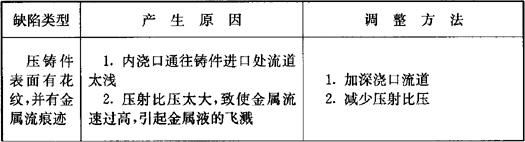 表6.3-2 压铸模试模中的缺陷与调整方法