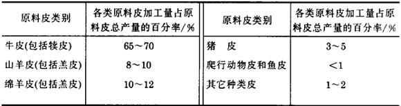 世界各类原料皮加工量占原料皮总产量的百分率见表1-2。