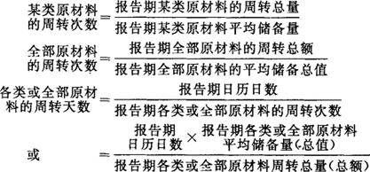 表示原材料储备周转速度的指标,直接反映原材料储备的利用和资金使用情况。其计算公式为: