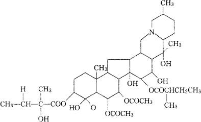 释义 | 原藜芦碱 A C41H63NO14=793.92 CAS-143-57-7 4α,9-环氧瑟瓦烷-3β-4,6α,7α 14,15α,16β,20-辛醇6,7-二醋酸酯3(S)-(2-羟-2-甲基丁酸酯)15(R)-(2-甲基丁酸酯)。 4α,9-Epoxycevane-3β-4,6α,7α 14,15α,16β,20-octol 6,7-diacetate 3-(S)-(2-hydroxy-2-methylbutanoate)15(R)-(2-methylbutanoate). 抗高血压药,催吐药。 Protoveratrine A Veralba,Pro-Amid,Salzberger,Protalba. USAN,MI. |