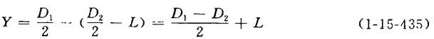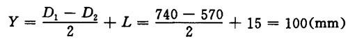 释义 | 双辊压榨偏心距的计算 【说明】 见图1-15-63 【公式】 式中 Y——偏心距(mm) D1、D2、——下辊及上辊直径(mm) L——垂线与下辊面间距(mm) 【例1】 真空下压榨辊直径D1=740mm,上压辊直径D2=570mm,L=15mm,则偏心距为: 【例2】 下压榨辊D1=600mm,上压榨辊D2=700mm,L=150mm,则偏心距为: |