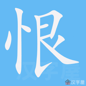 字源解说 艮,既是声旁也是形旁,表示震惊瞪眼。恨,篆文 = (心,怨愤)+ (艮,瞪眼),造字本义:因怨愤而瞪眼怒视。隶书 将篆文的“心” 写成 ;将篆文的 写成 。 附 文言版《説文解字》:恨,怨也。从心,艮聲。 附 白话版《说文解字》:恨,怨怒。字形采用“心”作边旁,采用“艮”作声旁。 引申线索
