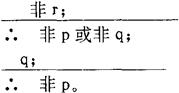 多重复合判断推理的一种。 所有三段论都可以表述为多重复合判断“如果p且q,那么r”。其中p和q相当于三段论的两个前提,r相当于三段论的结论。 所谓反三段论是沿著与三段论相反的方向进行的演绎推理。推理过程是首先否定三段论的结论,从而否定三段论的前提,然后肯定三段论的一个前提,从而最后否定另一前提。其逻辑形式如下: (1)如果p且q,那么r;   (2)如果p且q,那么r;  实际上反三段论是充分条件假言推理的否定后件式与相容选合推理的否定肯定式的综合形式。它是反驳的一种重要方法。 例如,反驳“所有的判断都是假的”就可以用反三段论。 ∵ 如果所有的判断都是假的, 而铜导电是判断,那么铜导电是假的; 并非铜导电是假的; ∴ 或并非所有判断是假的,或并非铜导电是判断; 铜导电是判断; ∴ 并非所有的判断都是假的。 |