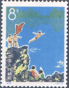 释义 | 发展体育运动 发行日期:1972年6月10日 齿孔度数:11 印刷版别:影写版 票幅:(39)60×27;(40)-(43)30×40 全张枚数:(39)40(5×8);(40)-(43)50(10×5) 设计者:吴建坤 印刷:北京邮票厂 (39)8分 球类运动 1000万枚 (40)8分 工人做广播体操 1000万枚 (41)8分 农民做“拔河”活动 1000万枚 (42)8分 解放军爬山拉练 1000万枚 (43)8分 青少年跳水、游泳 1000万枚 (39)-(43) 5枚全 |