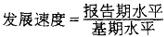 释义 | 发展速度 报告期发展水平与基期发展水平相比的动态相对数。它说明报告期水平已发展到基期水平的若干倍或百分之几,反映现象发展变化的快慢。计算公式: 发展速度由于用以比较标准的时期不同,可分为定基发展速度和环比发展速度两种。 |