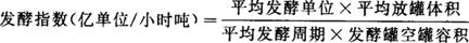 指反映抗生素生产发酵过程对比关系的指标。以报告期平均发酵单位乘以平均放罐体积,对比平均发酵周期乘以发酵罐空罐容积求得。其计算公式为: