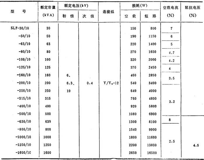 变压器主要型号及技术参数