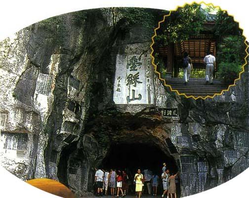 叠彩山位于桂林市北的漓江之畔,包括四望山、于越山和明月、仙鹤两座山峰,占地约2平方公里,因山石层层横断,如彩绸锦缎相叠,故而得名,古代山上多桂树而称之桂山,又由于山中有个四季生风的洞,也叫它作风洞山。山的南麓有登山古道,拾级而上数十步即可到达叠彩亭。亭东的小山就是于越山,山顶有于越亭,从亭中眺望明月峰山石,便见叠彩层层,琳琅满目,最能领略“叠彩”之意。叠彩亭西是四望山,四望山的西北侧则为仙鹤峰,仙鹤洞从山腹东西贯穿。叠彩山的主峰是明月峰。入叠彩门,便可见到“成仁碑”和“仰止堂”。明末大臣瞿式耜和张同敞在桂林抗清被俘,至死不降,就义于此,留下了他们的唱和诗《浩气吟》。过了“仰止堂”,阵阵清风扑面而来。风洞略似葫芦形状,前后开敞,中间狭小,南北对穿,随著季节变换,洞中来风有清、和、暖、冷之别。穿过风洞就是叠彩楼,有“江山会景处”的美称。出叠彩楼依山右行至望江亭,再向上攀登,就可以到达明月峰顶的拿云亭。此处是五代时楚王马賨所建马王台遗址。唐代以来,叠彩山就是旅游胜地,清末康有为来桂林讲学时,就住在风洞前的景风阁,留下了“康岩”“素洞”等题刻,以及“努力崇明德,随明爱景光”的手书对联。第二年,他在北京为变法图强而发起著名的“公车上书”在签名的各省举人中以广西的人数最多。