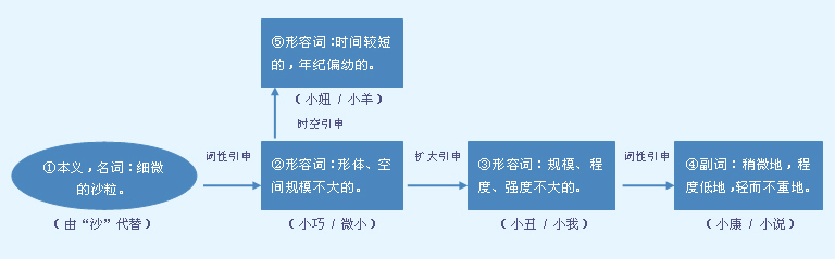 释义 | ![]() ❶ 比不上一般的;不大的: ~饭桌|大材~用|区区~事|这衣服太~,实在穿不下了。 大 dà ~山|地方太~了|力气很~|外面雨下得非常~。 ❷ 排行在最后的: ~女儿|~姨子|他是我的~舅舅。 大 dà ~哥|我是家里的老~。 ❸ 年纪小的人: 一家老~|两~无猜|孩子说话不要没大没~。 大 dà 全家~小五口。 老 lǎo 敬~|尊~爱幼|上有~,下有小。 ❹ 对与自己一方有关的人或事物的谦称: ~女尚未婚配|敬请光临~店|~人不敢胡说。 大 dà 尊姓~名|~驾光临|近日拜读了您的~作。 ★ “小”❶多用于体积、面积、尺寸及规模、力量、程度等。 ❶在体积、面积、数量、力量、强度等方面不及一般的或不及比较的对象(跟“大”相对)。能受程度副词修饰。 a.作谓语,能带补语。 声音太~|这房子很~|你的劲儿太~|这鞋~了一点|这块地比那块~多了。 b.作定语。 ~教室|~黑板|~碗|这儿只能放一张~床。 c.作补语。 这气球变~了|圆圈画~了。 ❷排行最末或年纪小的。 a.作谓语。 他最~|她还~,不懂事|他16岁,不~了。 b.作定语。 他是我的~儿子|~兄弟到学校去了|~同志,请帮帮忙。 ❸谦辞,称自己或与自己有关的人或事物。 ~店|~院|~女|~弟。 短时间地。只作状语。 请你~坐一会儿|我去乡下~住几天。 年纪小的人。能作“有”“养”等动词的宾语。 他上有老,下有~|她要养活一家老~。 【辨】 小和小小:见“小小”。 【近】 〈副〉稍 〈名〉少 幼 【反】 〈形〉❶❷大 〈名〉老 【词语】 小班 小辫子 小便 小不点儿 小菜 小差 小产 小肠 小车 小吃 小丑 小春 小葱 小聪明 小调 小动作 小豆 小肚子 小队 小恩小惠 小儿 小贩 小费 小分队 小腹 小工 小姑子 小褂 小广播 小鬼 小孩儿 小伙子 小将 小节 小结 小姐 小康 小麦 小米 小朋友 小品 小品文 小气 小巧 小人 小说 小偷 小腿 小戏 小鞋 小心眼儿 小型 小学 小引 小传 小篆 小组 字源解说 “小”是“沙”和“少”的本字。小,甲骨文 ![]() ![]() ![]() ![]() 附 文言版《説文解字》:小,物之微也。从八,丨見而分之。凡小之屬皆从小。 附 白话版《说文解字》:小,物体细微的特征。字形采用“八”作边旁,“丨”现而加细分。所有与小相关的字,都采用“小”作边旁。 引申线索 ![]() 【字族索引】 小 【同音字】 xiǎo |