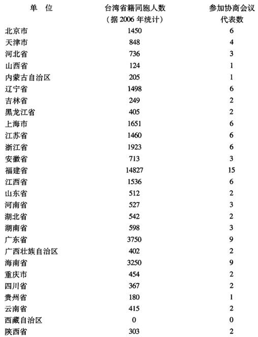 释义 台湾省出席第十一届全国人民代表大会代表协商选举会议代表分配方案