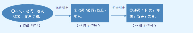 释义 | ![]() ❶依靠,倚仗。常用于固定词组中或用作语素构成合成词。 相~为命|唇齿相~|凭~|偎~|~~。 ❷依从,同意。常作带宾谓语。 这次就~了你|~着你该怎么办?|劝他休息,他怎么也不~。 ❶表示依据某种标准。如果后面不是单音节名词,可加“着”。构成介宾词组作状语。 ~法处理|~此类推|~着他的意思去办|~着图纸施工。 ❷表示按照某人的看法或说法。常用在主语前,构成插说作独立成分,后面有停顿。 ~我看,这问题不难解决|~你说,这事该怎么办? 【辨】 依和倚:都有动词和介词的用法,都有靠着的意思。 区别: ❶词义不尽相同。“依”是傍着、紧靠着的意思,所以引申出“依傍”“依照”等词;“倚”是斜靠在某物上,所以引申出“倚仗”“倚靠”等词。“倚”还有随着、和着、合着(指音乐)等意思,如“倚瑟而歌”;“依”没有这种意思。 ❷“依”词义较轻,用于一般场合;“倚”词义较重,如“安得倚天抽宝剑,把汝裁为三截”。 【近】 〈介〉按 顺 照 字源解说 甲骨文中“依”与“初”字形相同,疑是“依”字假借“初”的甲骨文字形。衣,既是声旁也是形旁,代表服装。依(初),甲骨文 ![]() ![]() ![]() ![]() ![]() ![]() ![]() ![]() 附 文言版《説文解字》:依,倚也。从人,衣聲。 附 白话版《说文解字》:依,倚偎。字形采用“人”作边旁,采用“衣”作声旁。 引申线索 ![]() 【字族索引】 衣 【同音字】 yī |