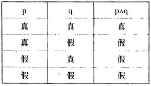 用合取真值联结词“”联结两个或两个以上的命题而成的真值形式。构成合取式的支命题称为合取支或合取项,用p、q、r等表示。合取式一般记为pq,读作“p合取q”。合取式的逻辑性质取决于“合取”这一真值联结词。一个合取式为真,当且仅当,它的每一个合取支是真的。合取真值联结词可用真值表来定义: