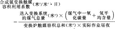 它是反映合成氨变换触媒容积利用程度的指标。其计算公式如下: