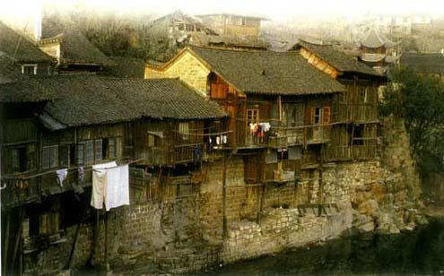 释义 | 吊脚楼——苗寨民居 苗家的吊脚楼是极富有于民族特色的建筑。湘西苗族大都背山面水而居,造房时善于利用山坡倾斜度较大或者濒临水、沟的一侧,使屋的前半部分临空悬出,于是便有了吊脚楼这种独特的民居。 湘西苗家的吊脚楼,飞檐翘角,三面有走廊,悬出木质栏干,栏干上雕有万字格、喜字格、亚字格等象征吉祥如意的图案。悬柱有八楼形和四方形,下垂底端常雕锈球和金瓜等各种装饰。吊脚楼结构一般为两层上层为居室或待客室,下层作贮粮存放杂物之用。上层室外为走廊,多为妇女女红劳作场所或者观花赏月之处。 |