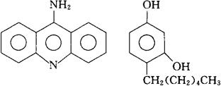 释义 | 吖啶琐辛 C12H18O2·C13H10N2=388.51 CAS-7527-91-5 4-己基-1,3-苯二醇与9-吖啶胺的复合物(1∶1)。 1,3-Benzenediol,4-hexyl-,compd.with 9-acridinamine(1∶1). 4-己基间苯二酚与9-氨基吖啶的复合物(1∶1)。 4-Hexylresorcinol compound with 9-aminoacridine(1∶1). 抗感染药。 吖苯二酚,己酚吖啶。 Acrisorcin,Akrinol,Sch 7056. INN,USAN. |