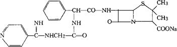 C24H25N6NaO5S=532.55 CAS-55162-26-0 CAS-55975-92-3(pirbenicillin) 6-[2-[2-(异烟亚氨酰氨基)-乙酰胺基]-2-苯乙酰胺基]青霉烷酸钠。 6-[2-[2-(Isonicotinimidoylamino)acetamido]-2-phenylacetamido]penicillanate sodium. (2S,5R,6R)-6-[(R)-2-[-2-(异烟亚氨酰氨基)乙酰胺基]-2-苯乙酰胺基]-3,3二甲基-7-氧代-4-硫杂-1-氮杂双环[3.2.0]庚烷-2-羧酸钠 (2S,5R,6R)-6-[(R)-2-[2-(Isonicotinimidoylamino)-acetamido]-2-phenylacetamido]-3,3-dimethyl-7-oxo4-thia-1-azabicyclo[3.2.0]heptane2-cazboxylate sodium. 抗生素类药。 异烟西林钠,吡苄青霉素。 Pirbenicillin Sodium. USAN.
