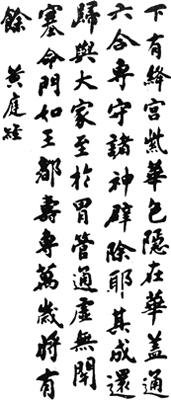 录《黄庭经》‘下有绛宫紫华色’一节。此帖书法结体纵长,气势沉稳。