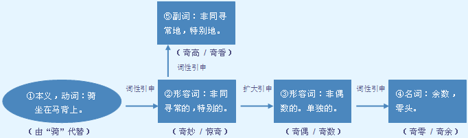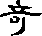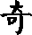 释义 | ![]() 单的;不成双的: ~数|~偶|1、3、5等都是~数。 偶 ǒu 对~|无独有~|~蹄类动物|2、4、6等都是~数。 ❶少见的,特殊的。 a.作定语。 植物园里种着许多~花异草。 b.作状语。 战争时期,药品~缺。 c.作宾语。 小伙子武功甚好,大家不由得暗暗称~。 d.作带补谓语。 这一朵朵大花,~就~在别具一格的结构上。 e.带上定语活用为名词,作主语。 黄山之~似乎是在层崖叠嶂间多生小松。 ❷出人意料、难以猜测的。常作带补谓语,可受程度副词修饰。 这件事实在太~了|这是绣球花,这花~在会变幻色彩。 【词语】 奇兵 奇才 奇才异能 奇耻大辱 奇功 奇观 奇花异草 奇货可居 奇景 奇巧 奇谈 奇袭 奇闻 奇文共赏 奇形怪状 奇珍异宝 奇志 奇装异服 【注意】 又读jī,如:奇数(表示数目不成双。跟“偶数”相对)。 字源解说 “奇”是“骑”的本字。奇,甲骨文 ![]() ![]() ![]() ![]() ![]() ![]() ![]() ![]() ![]() ![]() ![]() ![]() ![]() ![]() ![]() 附 文言版《説文解字》:奇,異也。一曰不耦。从大,从可。 附 白话版《说文解字》:奇,特异。另一种说法认为,“奇”是数字不成偶数。字形采用“大、可”会义。 引申线索 ![]() 【字族索引】 奇 可 【同音字】 jī qí |
