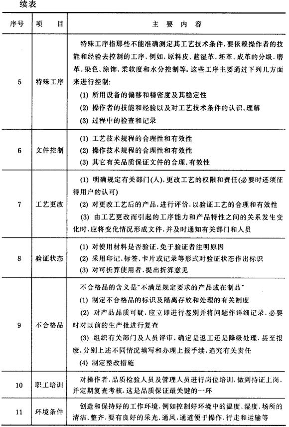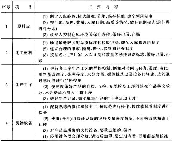 制革厂产品品质控制的项目繁多,内容也相当复杂,兹将控制项目及主要内容列于表4-1。