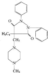 释义 | 哌布宗 C25H32N4O2=420.55 CAS-27315-91-9 4-丁基-4-[(4-甲基-1-哌嗪基)甲基]-1,2-二苯基-3,5-吡唑烷二酮。 4-Butyl-4-[(4-methyl-1-piperazinyl)methyl]-1,2-diphenyl-3,5-pyrazolidinedione. 消炎药,镇痛药。 哌保松,哌丁唑酮。 Pipebuzone,Elarzone,LD 4644. INN,USNA. |