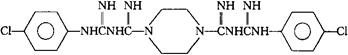 C20H24Cl2N10=475.38 CAS-5636-92-0 1,1′-[1,4-哌嗪二基双(亚胺羰基)]双[3-(对-氯苯基)胍]。 1,1′-[1,4-Piperazinediylbis(imidocarbonyl)]bis[3-(p-chlorophenyl)guanidine]. N,N′-双[(氯苯基)脒基]-1,4-哌嗪二羧基亚胺酰胺。 N,N′-bis[(Chlorophenyl)amidino]-1,4-piperazinedicarboximidamide. 抗菌药,抗真菌药。 Picloxydine,Bisguanizine,Pikloxidin,Vitabact. INN,DCF,USAN,MI.
