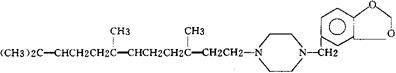 释义 | 哌法宁 C27H40N2O2=424.63 CAS-56208-01-6 1-(1,3-苯并间二氧杂环戊烯-5-基甲基)-4-(3,7,11-三甲基-2,6,10-十二碳三烯基)哌嗪。 1-(1,3-Benzodioxol-5-ylmethyl)-4-(3,7,11-trimethyl-2,6,10-dodecatrienyl)piperazine. 1-胡椒基-4-(3,7,11-三甲基-2,6,10-十二碳三烯基)哌嗪。 1-Piperonyl-4-(3,7,11-trimethyl-2,6,10-dodecatrienyl)piperazine. 抗溃疡病药。 用于消化性溃疡病的治疗。 Pifarnine,Pifazin,U 27. INN,USAN. |