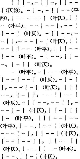 此调各体句读平仄颇有出入,可作伸缩,近于散文。双调,共9体。