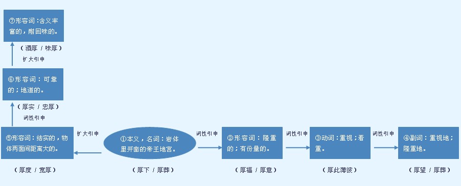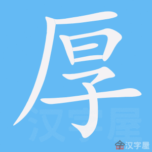 释义 | ![]() ❶ 感情多而深: 深情~谊|真心~意|承蒙老师对我的~爱。 深 shēn ❷ (味道)浓: 酒味很~。 浓 nóng ❸ 重视: ~此薄彼|~今薄古。 重 zhòng ❶ 扁平物上下两面之间的距离大: ~墩墩|~棉衣|那么~的一块砖头他一掌就劈开了。 薄 báo ~衣|~层|~纸|小伙子~~的嘴唇紧抿着,显得很腼腆。 ❷ 感情强而深: 深情~谊。 薄 bó ~情寡义。 浅 qiǎn 我们认识时间虽长,但交情却很~。 ❸ 味道浓: 香味醇~|这种醇香型的酒味道很~。 薄 bó 敬上~酒一杯。 ❹ 厚重: ~礼|家境~实。 薄 bó 奉上~酬|她的古文底子比较~弱。 扁平物上下两面的距离大(跟“薄”相对)。可引申为感情深或味道浓。 a.作定语,能重叠。 下了很~的一层雪|~~的木板|~~的一叠纸。 b.作谓语,不能重叠。 这件棉衣很~|饺子皮太~|他们俩的交情不~|头曲酒的味道比二曲酒~。 优待;推崇;重视。一般不单用,常用在固定词组中,必带宾语。 ~此薄彼|~今薄古|~古薄今。 【反】 〈形〉薄 稀 淡 〈动〉轻 【词语】 厚薄 厚此薄彼 厚待 厚度 厚墩墩 厚古薄今 厚今薄古 厚礼 厚实 厚望 厚颜 厚谊 厚意 厚遇 厚重 字源解说 厚,甲骨文 ![]() ![]() ![]() ![]() ![]() ![]() ![]() ![]() ![]() ![]() ![]() ![]() ![]() ![]() ![]() ![]() ![]() 附 文言版《説文解字》:厚,山陵之厚也。从 ![]() 附 白话版《说文解字》:厚,山陵厚实。字形采用“ ![]() ![]() 引申线索 ![]() 【字族索引】 未归类 【同音字】 hòu |
