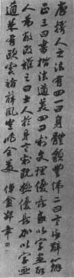 释义 | 唐择人书轴 【简介】: 近代·邵章书。纸本。行书。凡四行。刊于《民国时期书法》(上)。 【赏析】: 此行书轴与《行书题跋》书写风格差异很大。晋风逸气的閑乐雅舒,在这件行书中得以表达。逶过作品平和的用笔与无爲精神的通合,可看出邵氏治学态度的谨严,其书艺已达到较高水凖。 |