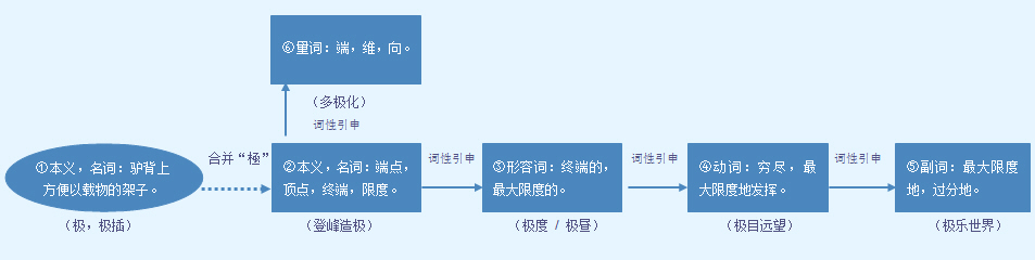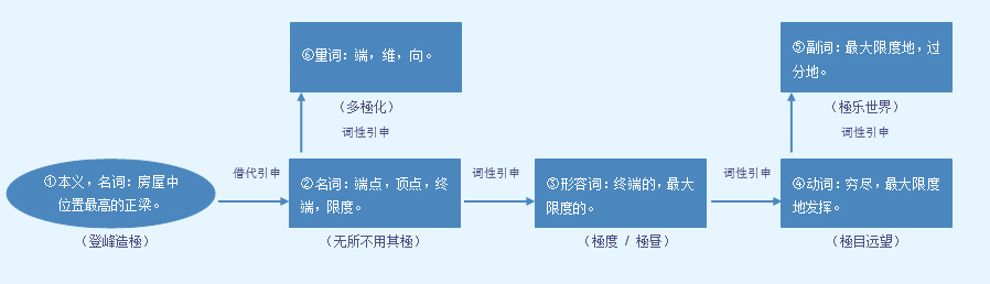 释义 | ![]() 副 表示达到最高度。 【例句】他对此事~有兴趣。 【同义】极其;极端;非常;十分;万分;绝顶;透顶;很;顶;颇 【辨析】“极”通用词,可作状语和补语;“极其”语气较强,带郑重的态度色彩,仅作状语,书面语词;“极端”强调到了顶端,语意最重,仅作状语,多用于书面语。另见“极其”。 表示程度最高。 a.用在形容词、动词性词语前面作状语,不带“地”。 最近的天气~冷|他的穿着~随便,不像有些演员刻意修饰打扮|刘师傅~能喝酒|她的丈夫和母亲都病了,~需大家的帮助|我嫂子~有涵养,能同家里人和睦相处。 b.用在形容词或心理活动动词后面作补语,前面不用结构助词“得”,后面却一般要加助词“了”。 夏夜的星空美~了|听到这个消息,同事们都难受~了|小敏对声控汽车玩具喜爱~了|《西游记》的故事,孩子们爱听~啦。 【辨】 (一)极和最:都是副词,都可表示程度高。 区别: ❶“最”指某种属性超过同类的人或事物,如“在我们班里,他的个子最高”“加工这种零件要求很高,最大误差不得超过一微米”等;“极”没有这种明显的相对性。 ❷“最”只能作状语,不能作补语。 (二)极和极其:见“极其”。 (三)极和非常:见“非常”。 【误】 他穿了一件极新的衣服。(某些形容词不受“极”修饰,如“新”“亲爱”“永久”等,这里应改为“很新的衣服”) 【近】 最 【词语】 极点 极光 极乐世界 极目 极品 极限 极刑 字源解说 本 字“极” 及,既是声旁也是形旁,表示抓住。极,篆文 ![]() ![]() ![]() ![]() ![]() ![]() ![]() ![]() 合并字“極” “亟”是“極”的本字。亟,甲骨文 ![]() ![]() ![]() ![]() ![]() ![]() ![]() ![]() ![]() ![]() ![]() ![]() ![]() ![]() ![]() ![]() 附 极 文言版《説文解字》:极,驢上負也。从木,及聲。 附 极 白话版《说文解字》:极,绑驴背上用以载物的木架。字形采用“木”作边旁,“及”是声旁。 附 極 文言版《説文解字》:極,棟也。从木亟聲。 附 極 白话版《说文解字》:極,房柱。字形采用“木”作边旁,“亟”是声旁。 引申线索 ![]() 字源解说 “ ![]() ![]() ![]() ![]() ![]() ![]() ![]() ![]() ![]() ![]() ![]() ![]() ![]() ![]() ![]() ![]() ![]() ![]() ![]() ![]() ![]() ![]() 附 文言版《説文解字》:極,棟也。从木,亟聲。 附 白话版《说文解字》:極,房柱。字形采用“木”作边旁,采用“亟”作声旁。 引申线索 ![]() 【字族索引】 及 【同音字】 jí |
