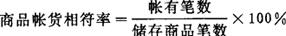 释义 | 商品帐货相符率 指盘点商品时商品的品名、规格、等级、产地、编号、数量等帐面上商品笔数同储存商品的笔数的比例。 它是反映仓库商品保管相符程度和帐务管理水平的一项指标。其计算公式如下: 商业部规定:以整进整出为主的仓库一般不低于99.5%;以整进零出为主的仓库一般不低于98.5%。 |