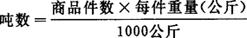 指把商品数量折合成吨数的方法。它根据不同的数量单位(件、箱、个、打、匹、桶)等折合成为统一的吨数。其计算公式如下: