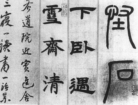 释义 | 四体书帖册 【简介】: 淸·邓石如书于嘉庆二年(1797)。纸本。楷、草、隷、篆四体书。每种书体各三页,共十二页,每面29.7×44.2cm。刊于日本《书道全集》(二十四)。 【赏析】: 邓石如一生用力于篆隷,印、书造诣极深,开宗立派,影响深远。《四体帖》爲其书法代表作品之一。 篆书此帖篆书正文仅二十四字,属于工整的玉箸篆一路。邓石如的篆书得力于秦汉碑刻、瓦当,又吸取唐李阳冰笔意。此帖在结体上,破小篆的长方整饬,变爲上紧下伸,舒展自如,开创了婀娜不失劲健,婉通而有雄姿的一代篆书新风。此帖中的多笔画字,安排得密而不犯,如“震”、“涛”、“递”、“响”、“万”、“腾”等;少笔画字,处理得疏而不散,如“石”、“人”、“不”、“天”、“下”等。逆锋入笔,但竪画往往不回锋收笔,只是提笔作结,听其自然,颇显空灵、淸新。 隷书此帖隷书正文五十三字,极爲沉雄工整。邓石如是在学成篆书之后临写汉碑的,因此结体、用笔出规入矩,且多新意。此帖隷书方圆并见,以方爲主。体势方正、笔画平实,重感、力感甚是强烈,实以《熹平石经》爲体,兼以唐隷笔意爲用。波笔方稜,稍上挑收笔;磔笔平出,不强调所谓“燕尾”,颇近楷书捺笔。其篆、隷相比较,篆新新在结体、体势,隷新则新在体势、用笔。总的艺术成就,隷书高于篆书。 楷书此帖楷书正文四十九字。邓石如书法的深厚功力表现在篆书和隷书上,又以隷书爲最。他的楷书取势方扁,近似其隷,虽有自家风,但毕竟少有骨力,显得平平。他学书是先工篆,再由篆入隷,由隷入楷。而其主要精力用在篆刻和篆隷书法上。可以看出,他的楷书立意虽高,但功力不济,试图力追晋人,然而终未步入晋境。此帖顺锋入笔太多,横画行笔取勒势固然是好,但往往左弱右肥,缺少一波三折的起伏之趣,撇用捺拖,飘浮不实。总的来看,不及篆隷成就远甚。 行草此帖行草书正文一百五十字。《四体帖》中的楷书和行草书,均有年月款,爲淸嘉庆丁巳(1797)年七月所作,篆书和隷书均无年款。根据笔力来看,篆、隷创作时间当早于楷书和行草书。书家活了六十三岁,作楷书、行草书这一年是五十五岁,将近晚年,所以笔力不及篆隷。此行草书是行多草少,同他的其他书体一样,别具一格。点画虽不经意,使转却富匠心。笔画的伸缩、避就、揖让等,由情而生,随意而爲,不拘陈法,跌宕多姿,情趣盎然。一行中大小参差,一篇中气脉相连,旣稚拙而又老辣。除力感不及篆隷外,其格调实在篆、楷之上。 |