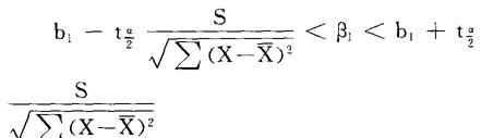 随机误差e常被假定服从均值为0(误差无偏性)的正态分布,方差的齐性(D(ei)=σ2),及误差独立性(E(eiej)=0)等。只有两个变量X,Y的简单线性模型为Y=β0+β1X+e,样本回归直线方程是 根据该方程可对X、Y的关系进行研究,并作预测分析。若置信度为1-α,β1的置信区间是
