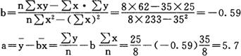 【释文】: 也叫直线回归方程。 它是回归分析的数学模型和手段。如果两变量间确实存在直线相关关系,而当我们将自变量x与因变量y的各个数据在直角坐标系中用相应的点表示出来时,便会形成一个趋势明显的狭长的带状分布图。用一合适的直线来近似地表示这一带状线型分布,则这条直线便叫回归直线,它表示自变量与因变量之间特定的数量关系。而具体描述说明自变量与因变量之间特定数量关系的数学模型就叫回归方程或直线回归方程,通常被写作:y=a+bx。式中x为自变量,y为因变量,a和b为特定系数。其中a表示回归直线在y轴上的截距,b为回归直线的斜率,也叫回归系数。 一旦a和b确定了,则回归直线也就确立了。在这里a和b可由标准方程组:  求得。 解上述方程组可得:   例如某村女青年受教育年限与理想子女数相关表如下:   依据上表可得:  将a=5.7,b=一0.59代入y=a+bx可得y=5.7-0.59x由此女青年受教育年限与理想子女数的回归方程便被确立了。 这样我们就可以赁借著这一回归方程来分析预测。 |