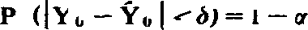 置信区间是为进行回归预测区间估计,由各估计值 、标准误差和显著性水平等参数确定的上置信限和下置信限在回归直线两侧所构成的预测区间。 利用建立的回归线性方程,对给足的Xu,可作出对Y0的点估计。但在以样本估计值 推断总体参数Y0时,需要知道Y0的可能取值范围及其可信程度,以作出区间估计。为此,可寻找两个正数δ和α,使总体参数Y0包含在区间 内的概率为1-α,即   上式: 就是Y0的置信区间,1-α表达了区间估计的可靠概率(又称置信度或置信水平);α称为显著性水平,表达了区间估计不可靠的概率,按照一定的要求,预先给定。 通常采用0.5,0.01,0.001三个标准。 如选用α=0.05,即1-α=0.95,表示总体参数Y0将有95%的可能性包含在由样本估计值计算的置信区间内,有5%的可能性落在置信区间之外。假设 和Y0服从正态分布,则Y0与 的误差δ,也服从正态分布。 经过演算得出: |