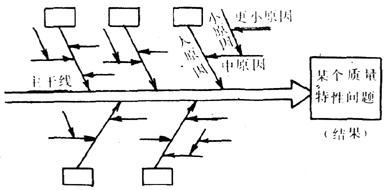 释义 | 因果分析图法 运用因果图分析影响产品质量诸因素间因果关系的一种方法。 因果图又称树枝图或鱼刺图(见下图)。有一条主干线指向结果,并从主干线分别引出大枝、中枝、细枝、小枝,以说明造成不合格产品的各种大、中、小原因。 为了查清产生某种质量问题的原因,可采用开调查会的办法,从“5M1E”六个方面集思广益、步步深入分析。把分析提出的原因从主到次、从大到小、从粗到细、寻根究底,如实简明地反映在因果图上,据以有针对性地为消除不合格品、提高产品质量采取有效措施。措施实施以后,应再用排列图等检验其效果。 |