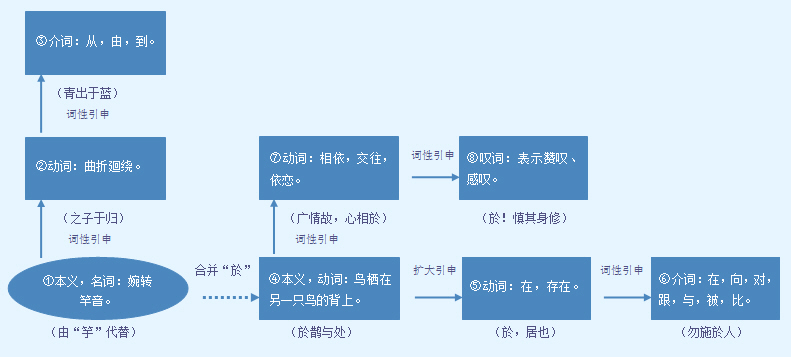释义 | ![]() 用于书面语。具有文言色彩。❶有“在”的意思。构成介宾词组充当句子成分。 a.用在动词前或句首作状语。表示时间、范围。 新中国~1949年10月1日成立|货物~昨日收到|招生简章已~三日前寄出|~攻读专业书籍之外,我也看一些文艺作品。 b.用在动词后作补语。表示时间、处所或者范围。 马克思生~1818年|小王出生~上海|景德镇瓷器驰名~全世界。 ❷有“向”“对”的意思。构成介宾词组充当句子成分。 a.用在动词前作状语。表示对象。 你这么做,~事无益|目前的形势~我们有利。 b.用在动词、形容词后作补语。表示方向、目标或对象。 他致力~技术革新|他一生从事~科学研究|工程接近~完成|告慰~知己|求教~人|国际形势有利~国内建设|有益~人类。 ❸有“自”“从”的意思。构成介宾词组用在动词后作补语。表示处所或来源。 黄河发源~青海省|天才来源~勤奋。 ❹有“比”的意思。构成介宾词组用在形容词或动词后作补语。表示比较。 周总理的功德高~天|为人民而死,重~泰山。 ❺有“被”的意思。构成介宾词组用在动词后作补语。表示被动。 见笑~大方之家|乒乓球友谊赛,客队再次负~主队。 a.用在动词性语素后。 合~|属~|在~|至~。 b.用在形容词性语素后。 勇~|敢~|易~|难~。 【近】 〈介〉❶在 ❷向 对 ❸从 自 ❹比 ❺被 字源解说 本 字“于” “于”是“竽”的本字。于,甲骨文 ![]() ![]() ![]() ![]() ![]() ![]() ![]() ![]() ![]() ![]() ![]() ![]() 合并字“於” 於,金文 ![]() ![]() ![]() ![]() ![]() ![]() ![]() ![]() ![]() ![]() 于 文言版《説文解字》:于,於也,象气之舒亏。从丂,从一。一者,其气平之也。凡亏之屬皆從亏。今變隸作于。 于 白话版《说文解字》:于,即“於”,字形像气息的舒张与亏缺。字形采用“丂、一”会义。指事符号“一”,表示气息平缓。所有与亏相关的字,都采用“亏”作边旁。现今“於”简化写作“于”。 於 文言版《説文解字》:段玉裁注:於,象古文烏省。此卽今之於字也。象古文烏而省之。……此字旣出,則又于於爲古今字。釋詁,……凡經多用于,凡傳多用於。而烏鳥不用此字。 於 白话版《说文解字》:段玉裁注:“於”的篆文 ![]() ![]() ![]() ![]() ![]() ![]() 引申线索 ![]() 【字族索引】 于 【同音字】 yú |