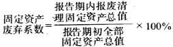 亦称“固定资产报废率”或“固定资产退废率”。 它是指物资企业在报告期内报废清理的固定资产总值占期初全部固定资产总值的比率。表明报告期内固定资产的报废程度。也是反映固定资产增减变动情况的指标。 计算公式如下:  式中,分子为报废的固定资产总值,是指报告期报废的固定资产,在购置、建造及改造、扩建中支付的全部金额;分母为全部固定资产的期初总值,即报告期期初全部固定资产的购置、建造、改造、扩建支付投资的合计数。 所以要用期初数计算,是因为报废清理的固定资产,原来只包括在期初数内,期末数已不包括这种因素。废弃系数也可按年度或一段较长期间进行考查。 |