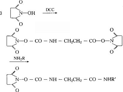 释义 | 固相肽合成中的接肽方法 固相肽合成法(solid-phase peptide synthesis,SPPS)自1963年由梅里菲尔德(R*B*Merrifield)首次提出其设计思路至今,经过30余年多肽化学工作者的改进和完善已成为一种十分重要和常用的多肽合成技术。 其发展和推广除了归功于种类繁多的固相载体、肽链在载体上的连接和解脱方法、以及各种新型、优异的α-氨基与侧链保护基的出现外,还应归功于各种接肽方法的日趋势成熟和不断创新。在SPPS中得到普遍应用的接肽方法主要有4种:(1)直接缩合法(In situ法);(2)对称酸酐法;(3)缩合试剂/添加剂法;(4)活泼酯法。 直接将N,N′-二环已基碳二亚胺(DCC)和 所经过的活化中间体为高反应活性的O-酰基异脲Ⅰ和对称酸酐2。 In situ DCC法操作简便,反应速度快,产率高,因而至今一直得到广泛的应用。但主要缺点是:(1)在反应中生成的副产物二环已基脲在接肽溶剂二氯甲烷中的溶解度很小,要将其洗涤除去需要花费大量的溶剂和时间,甚至虽经多次洗涤,仍会有少量吸附在树脂内部的空隙中而影响后反应。 因此发展了生成的脲能溶于二氯甲烷的碳二亚胺型缩合试剂,如萨拉坦可斯(D.Sarantaksi)等1976年发现的二异丙基碳二亚胺;伊泽德白斯克(J.IZdebski)等1984年和1989年发现的特丁基乙基碳二亚胺和特丁基乙基碳二亚胺。(2)活化和缩合在一起进行,消旋副反应的产物不能预先除去,就存在连接到肽链上的危险。 (3)当羧基组分为Nα-保护的Asn和Nα-保护的Gln时,不能用此法接肽,因为二者在用DCC活化时,可以发生脱水副反应生成腈化的3,3可以再次被DCC活化而连接到肽链上。 鉴于上述缺点,人们又研究发展了其他类型的缩合试剂,其中在In situ法中得到应用的有Bop(4)、PyBop(5)、HBTU(6)和Bop-Cl(7)。 1988年阿恰纳(H.Echner)采用In situ Bop法合成了含28个残基的胸腺素α1,认为该法尤其适合连续流程的固相合成技术。连接Nα-保护Glu和His(Tos)时,和DCC法相比消旋产物比例降低。 而且连接Nα-保护的Ser、Thr、Tyr时,这些氨基酸的侧链羟基可不加保护。Bop法的缺点是其反应副产物为致癌化合物HMPA,同时也不适用于Nα-保护Asn和Gln的接肽。 用PyBop代替Bop则生成的副产物毒性大大降低。 HBTU法比Bop法更为有效,接肽时氨基酸的侧链羟基也无需保护,而且适用于Gln和Asn的接肽。 其反应副产物无毒且溶于水和二氯甲烷,易于除去。Bop-CE特别适用于立体位阻大的Nα-保护氨基酸的接肽,但其缺点是有消旋副反应。添加HOBt或咪唑可以降低产物的消旋程度。 鉴于In situ DCC法实际上主要经过对称酸酐2进行的事实,1971年威拉德(T.Wieland)等提出了对称酸酐法。 最常用的实验步骤是将Nα-保护的氮基酸和DCC按2∶1的比例在二氯甲烷中0℃反应15~20min,滤出析出的二环已基脲,所得对称酸酐立即用于接肽反应。Bop和HBTU也可用来制备对称酸酐。 对称酸酐法的特点为:(1)反应活性高,反应速度快;(2)缩合产率高(99.6%~99.8%);(3)克服了In situ DCC法的某些缺点,如DCC与肽链的某些副反应,副产物二环已基脲难除去等。其主要缺点是原料浪费,而且同样不适于Nα-保护的Asn和Gln的接肽。 对Nα,Nω-双保护的Arg也不适用,因其高活性的对称酸酐存在下式所示的副反应,生成δ-内酰胺8。 对称酸酐法的另外两个副反应为在三级胺存在下的消旋反应和下式所示的重排形成二肽9的副反应。9能被进一步活化导致微量的(≤0.3%)“夹心肽”的形成。对Gly此副反应最为严重。 在用对称酸酐法接肽时,卡尔斯根(R.Kirstgen)、劳尔森(R.H.Laursen)、王(S.S.Wang)等报道一旦反应开始或接近完全,在反应液中添加某些碱性物质如二异丙基乙基胺、N-甲基吗啉和4-二甲氨基吡啶等可以促进反应速度。但4-二甲基氨基吡啶较少使用,因其同时也能促进消旋副反应和成二肽副反应的发生。反应液中存在DMF或添加三氟乙醇也有利于增加反应速度。 1966年威敢德(F.Weygand)等人发现用DCC作缩合试剂时添加某些辅助性的亲核试剂如N-羟基丁二酰亚胺(HOSu)可以抑制DCC法中的消旋副反应和O→N迁移副反应。 这一方法在SPPS中立即得到了应用。但对HOSu而言,由于它在SPPS中反应速度不理想,产率也不好,且存在下式所示的副反应,导致肽链的终止,故而在SPPS中较少用于逐步合成,较多用于片段合成。 1970年凯耐格(R.Geiger)等人报道的1-羟基苯骈三唑(HOBt)是一个较好的添加剂,它不与DCC反应,因而没有象HOSu那样的副反应,而且反应速度快(接近In situ DCC法及对称酸酐法),产率高,产物的消旋程度小,还避免了In situ法中的O→N迁移副反应,因而已发展成为一种常用的固相成肽方法——DCC/HOBt法。其活化中间体主要为Nα-保护氨基酸形成的HOBt活泼酯10。 该法可按两种方式操作:(1)In situ和(2)预先活化HOBt法。也可采用其它缩合试剂如Bop和Bop CE等来形成HOBt活泼酯。据汉得森(D.Hudson)报道,Bop/HOBt法反应速度大于In situ DCC法,而DCC/HOBt法则略小于In situDCC法。 缩合试剂/HOBt法可采用于Nα-保护Asn和Gln的接肽,因为在该种反应条件下,这两种氨基酸的脱水副反应可得到抑制。但却不适于α氨基用邻硝基苯硫基、联苯异丙氧羰基(Bpoc)的氨基酸及咪唑基用于对甲苯磺酰保护的His的接肽,因为HOBt的酸性能引起这些对酸敏感的保护基的提前脱除。 活泼酯法是一种久为人知并得到稳定发展的成肽方法。 活泼酯一般采用在DCC或其他缩合试剂存在下将Nα-保护氨基酸和相应的羟基化合物缩合制备。活泼酯法的优点是把活化中间体变成具