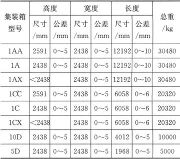 释义 | 国家标准集装箱 按中国国家标准制造的“集装箱”。 根据GB1413-85《集装箱外部尺寸和额定重量》的标准,分为5D、10D、1CC、1C、1CX、1AA、1A、1AX等八种。前两种集装箱主要用于国内运输;后六种集装箱主要用于国际运输。国家标准集装箱的外部尺寸、公差和总重见下表。 国家标准集装箱外部尺寸、公差和总重 |
