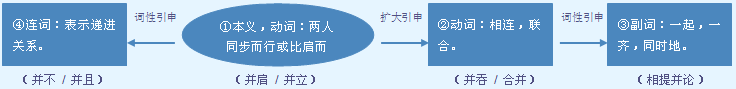 释义 | ![]() (*併) (*並*竝) 连 并且。 【例句】我完全同意~拥护这个决定。 【同义】并且;跟;和;及;暨;同;与 【辨析】在连接词时,“并”多用于双音节动词,“并且”还常用于形容词、副词等; 在连接分句时,“并”后面不能停顿,也不能用在主语不同的后一分句之前;“并”不能连接句子,且多用于书面语。 合在一起: 合~|三步~作两步|这两件事你可以~在一起做。 分 fēn ~开进行|全体人员~为三批出发。 裂 liè 四分五~。 ❶并且。多用来连接双音节的动词或形容词,也可连接词组或句子,表示更进一层的意思。 办公会讨论~通过了陈奕关于产品承包到人头的提议|他们找出了机器的毛病,~研究了解决的办法|他迅速~准确地回答了问题|厂里把他爱人调到了本市,~把他母亲也从农村迁了出来。 ❷和。用在词语之间,表示一种并列关系。 我、天兄,~同学会诸君都一齐投奔了北伐军。 ❶表示不同的事物同时存在或不同的事情同时进行、同等对待,有共同的意思。用在单音节动词或形容词前面,作状语。 “两种制度”~存,这确实是一种高瞻远瞩的尝试|学习要手脑~用,方能学好、记牢|学习外语应当听、说、读、写~重。 ❷用在否定词前面,加强否定语气,只作状语。 这是为了安全起见,~非多余|我~不想难为你|他~未离开此地|批评你是为了帮助进步,~无个人成见。 两种或两种以上的事物并排着;合在一起。可作带宾、带补谓语。 我们肩~着肩,携手共进|不要把一类苗和二类苗~在一起|他三步~作两步,冲了上去。 【误】 他喜欢画画、刻印、摄影并种花、养鱼等等。(“并”作为连词,表示意思进了一层。这里“喜欢”的宾语是个并列成分,应把“并”改为顿号,或改为“以及”) 字源解说 本 字“并” 并,甲骨文 ![]() ![]() ![]() ![]() ![]() ![]() ![]() ![]() ![]() ![]() ![]() ![]() ![]() ![]() ![]() ![]() 合并字“並” 並,甲骨文字形 ![]() ![]() ![]() ![]() ![]() 并 文言版《説文解字》:并,相从也。从从,幵聲。一曰从持二为并。 并 白话版《说文解字》:并,相跟随。字形采用“从”作边旁,采用“幵”作声旁。另一种说法认为,“并”是由“从”字带着两个“干”字而构成的。 竝 文言版《説文解字》:竝,併也。從二立。凡竝值屬皆从竝。 竝 白话版《说文解字》:竝,并肩而立。字形采用两个“立”会义。所有与竝相关的字,都采用“竝”作边旁。 引申线索 ![]() 【字族索引】 开 并 【同音字】 bīng bìng |